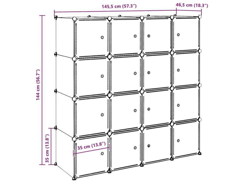 - Rozměry přihrádek na kostky (každý kus) 35 x 45 x 35 cm (Š x H x V)