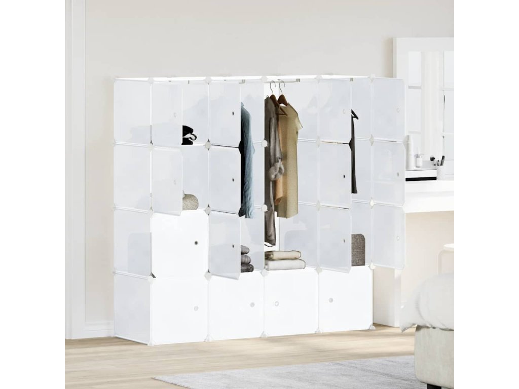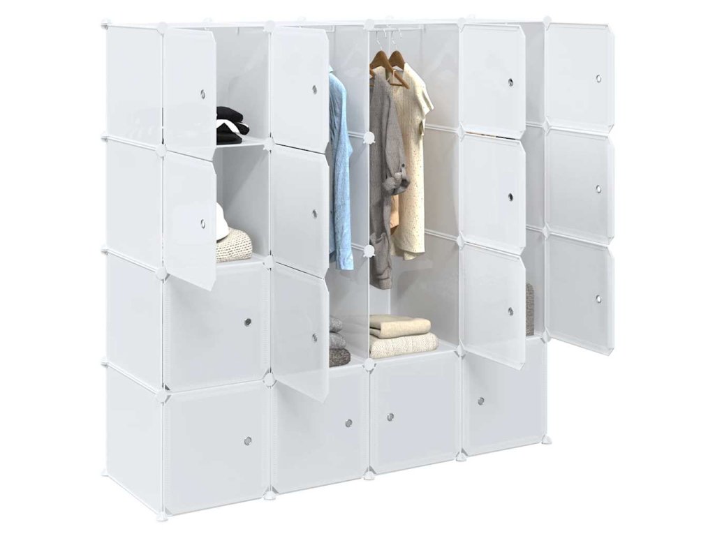 - Všestranné řešení pro ukládání dat: Organizér je vybaven třemi integrovanými kostkami se závěsnými tyčemi, které nabízejí prostorný prostor pro zavěšení oblečení, aby se minimalizovalo jeho pomačkání. Další kostky poskytují velkorysý prostor pro složené oblečení, boty, šály a další nezbytnosti, takže vše zůstává uspořádané a snadno přístupné.