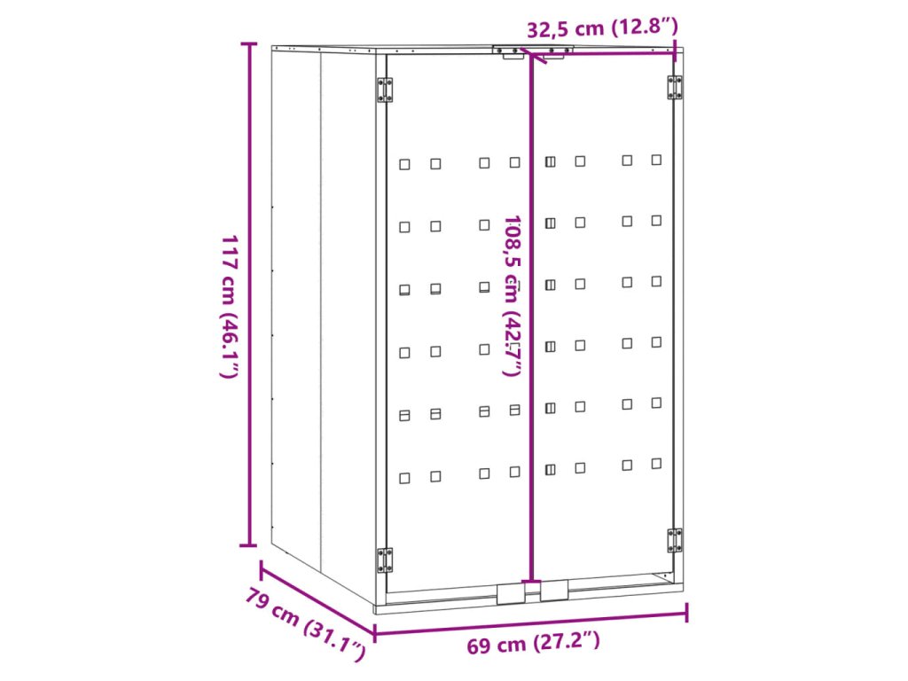 vidaXL Úložný prostor na popelnici na kolečkách pro jednu popelnici antracitový 69 x 79 x 117 cm ocelový