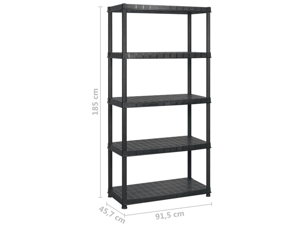 - Rozměry (každá police): 91,5 x 45,7 x 185 cm (D x Š x V)