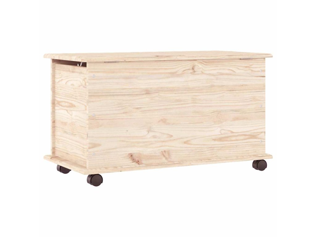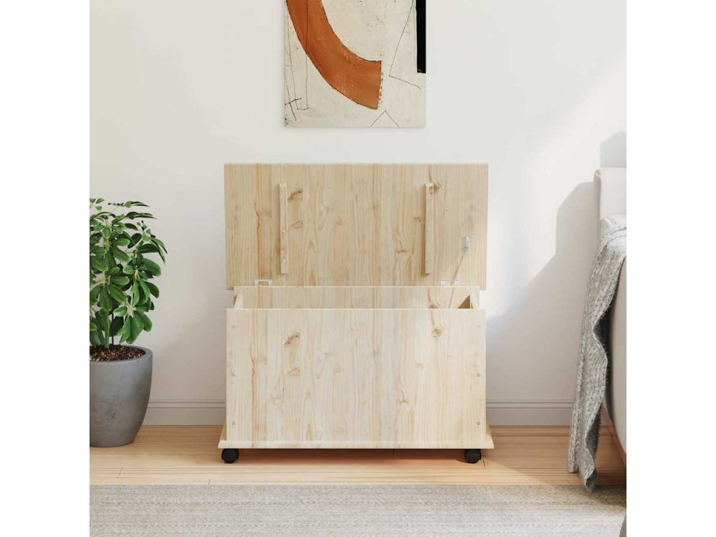 Tato dřevěná truhla na kolečkách je ideálním úložným řešením pro váš obytný prostor.