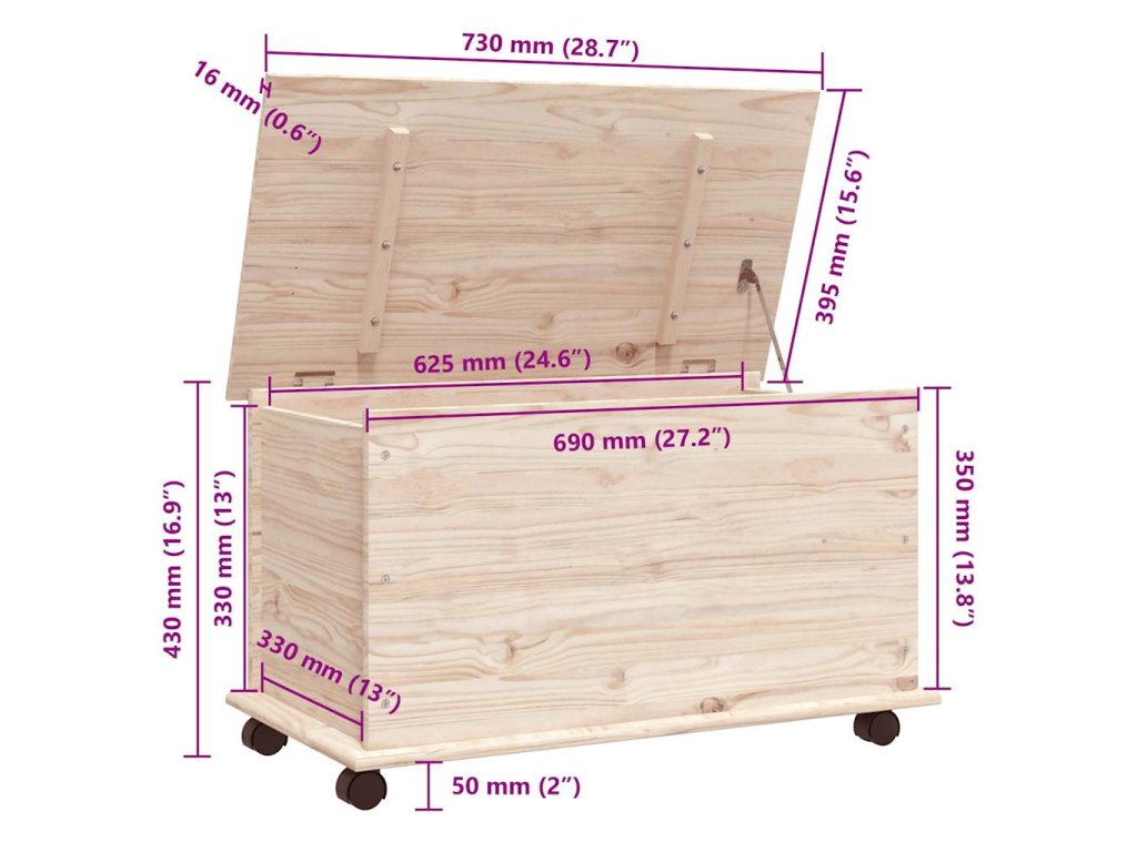 - Bez povrchové úpravy: Jelikož je truhla s víkem vyrobena z masivního borového dřeva bez povrchové úpravy, můžete zachovat její přirozenou barvu, ale také ji podle libosti natřít nebo nalakovat.