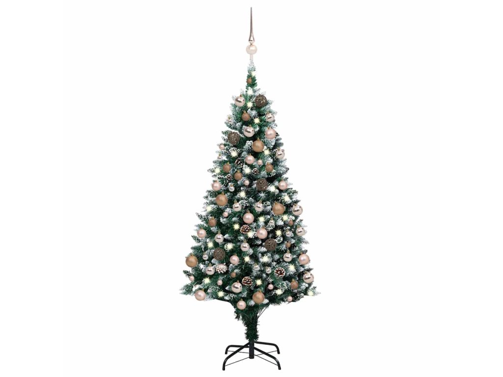 Vánoční stromek má špičaté větve s bílým sněhem na špičkách, což mu dodává mimořádně hustý vzhled. Jehličnaté větvičky a borové šišky, které v balení najdete, lze uspořádat do jakékoli podoby. Tento stromek můžete používat rok co rok o dalších Vánocích, je tedy mnohem ekonomičtější než živý stromek. Má také kovový podstavec, který mu zaručí stabilitu. Je vybaven energeticky úspornými LED světly, krásně svítí a vytváří útulnou vánoční atmosféru. Vánoční stromek je navíc ozdobený krásnou špičkou a koulemi a bude středem pozornosti vašeho domova.