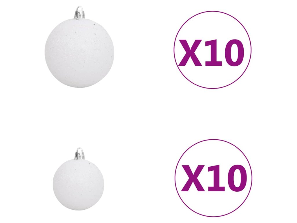 - Barva koulí: lesklá bílá, třpytivá bílá, lesklá šedá a třpytivá šedá