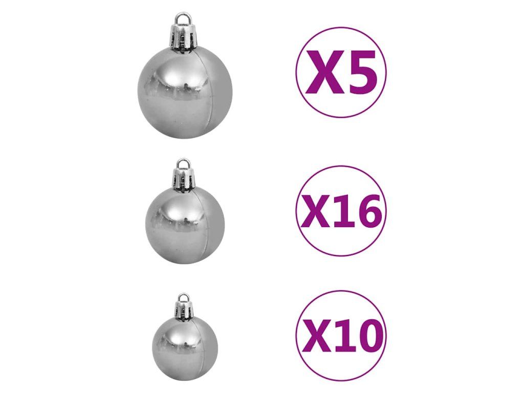 Tento vánoční stromek napodobující borovici má realistické špičaté větvičky, které jsou na koncích zdobené bílými třpytkami, a je velmi hustě rozvětvený. Tento krásný vánoční stromek je lehký a odolný. Jehličnaté větvičky a přírodní borové šišky, které v balení najdete, lze uspořádat do jakékoli podoby. Tento stromek můžete používat rok co rok o dalších Vánocích, je tedy mnohem ekonomičtější než živý stromek. Železný stojan zajišťuje výbornou stabilitu. Je vybaven energeticky úspornými LED světly, krásně svítí a vytváří útulnou vánoční atmosféru. Vánoční stromek je navíc ozdobený krásnou špičkou a koulemi a bude středem pozornosti vašeho domova.