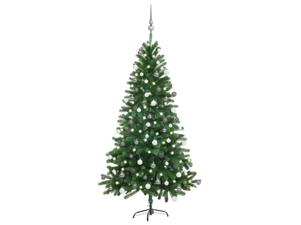 Jehličí tohoto velmi realistického stromku je vymodelované vstřikováním z PE. Stromek je lehký, klimaticky odolný a má dlouhou životnost. Tento půvabný vánoční strom je voděodolný. Větvičky lze uspořádat do jakékoli podoby. Tento stromek můžete používat rok co rok o dalších Vánocích, je tedy mnohem ekonomičtější než živý stromek. Disponuje také ocelovým podstavcem, jenž zaručuje jeho stabilitu. Je vybaven energeticky úspornými LED světly, krásně svítí a vytváří útulnou vánoční atmosféru. Vánoční stromek je navíc ozdobený krásnou špičkou a koulemi a bude středem pozornosti vašeho domova.