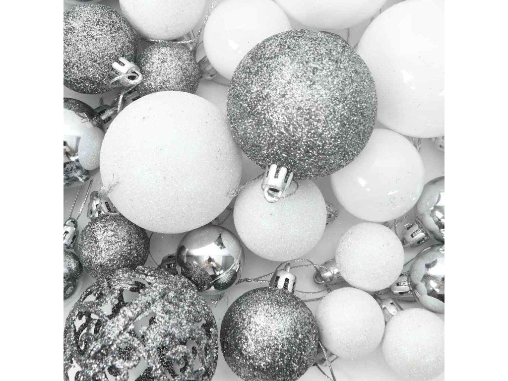 - Barva koulí: lesklá bílá, třpytivá bílá, lesklá šedá a třpytivá šedá