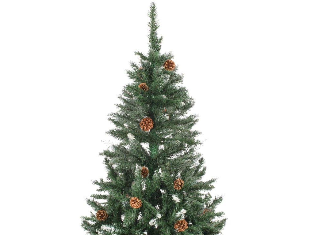 Vánoční stromek připomínající živou borovici má stejné, realisticky působící špičaté větvičky, které jsou na koncích ozdobené bílými třpytkami, a je velmi hustě rozvětvený. Tento půvabný stromeček je lehký a má dlouhou životnost. Jehličnaté větvičky a přírodní borové šišky, které v balení najdete, lze uspořádat do jakékoli podoby. Umělý stromeček navíc můžete používat rok co rok o každých Vánocích, je tedy mnohem ekonomičtější než živý strom. Železný stojan zajišťuje výbornou stabilitu. Montáž je snadná.