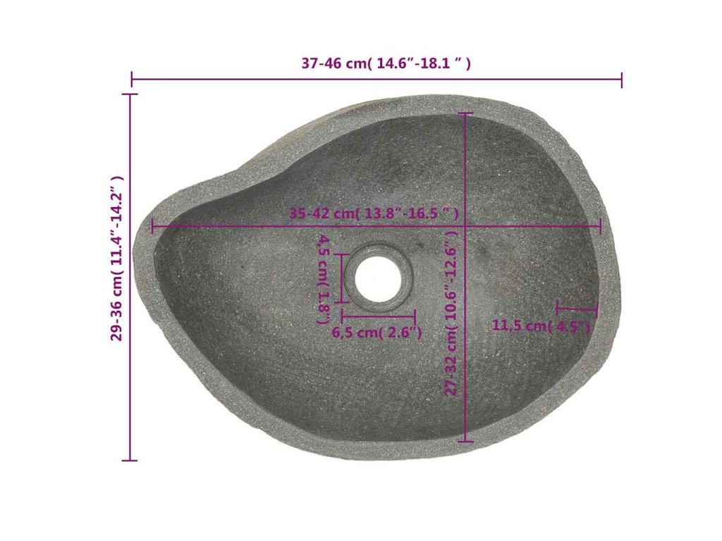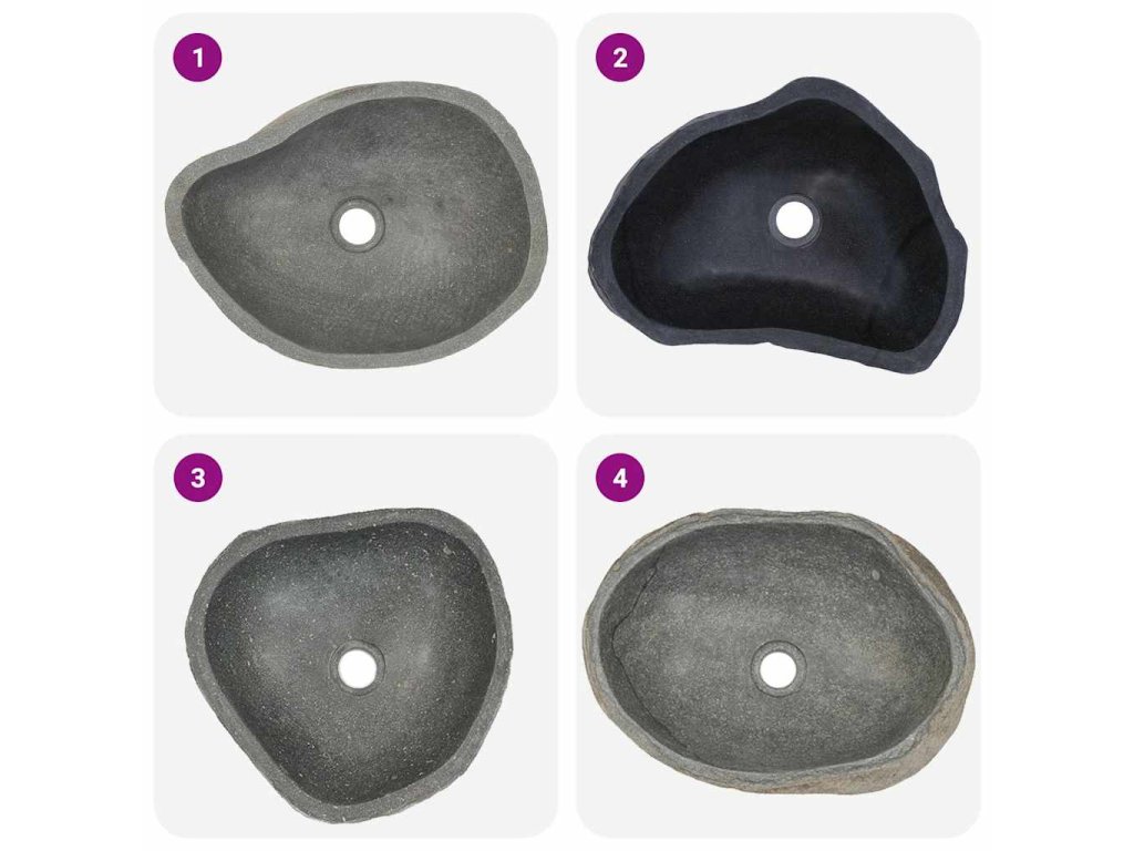 Poznámka: Říční kámen je přírodní produkt, a proto se v jeho zbarvení a tvaru mohou vyskytovat drobné rozdíly, prohlédněte si prosím fotografie produktu. Skutečný produkt může být světlejší nebo tmavší než na fotografiích a v jeho zbarvení se též mohou vyskytnout kombinace různých barev. V případě objednání více umyvadel nelze zaručit, že budou mít stejnou velikost, tvar a barvu.