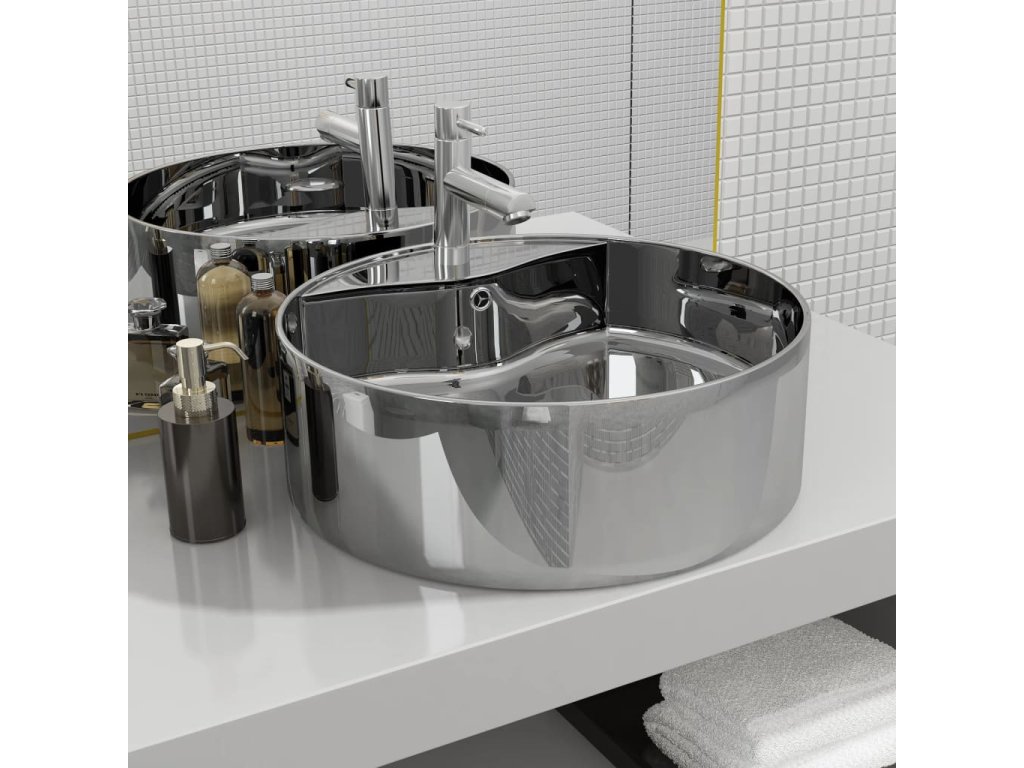 Toto kulaté umyvadlo je vyrobeno z keramiky a představuje stylový a nadčasový doplněk do každé koupelny, umývárny, šatny nebo na toalety.