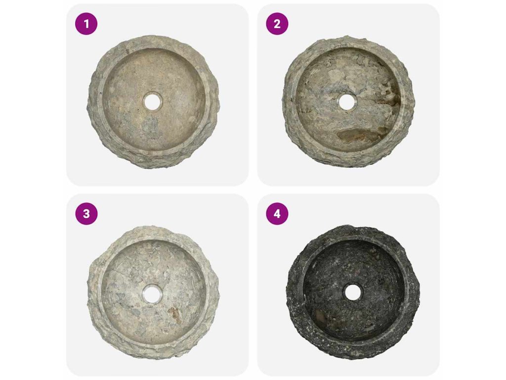 Poznámka: Mramor je přírodní produkt, a proto se v jeho zbarvení mohou vyskytovat drobné rozdíly. Zejména pro šedě zbarvený mramor platí, že skutečný produkt může být světlejší nebo tmavší než na fotografiích a v jeho zbarvení se též mohou vyskytnout kombinace různých barev. Příklad opravdového zbarvení produktu viz poslední obrázek.