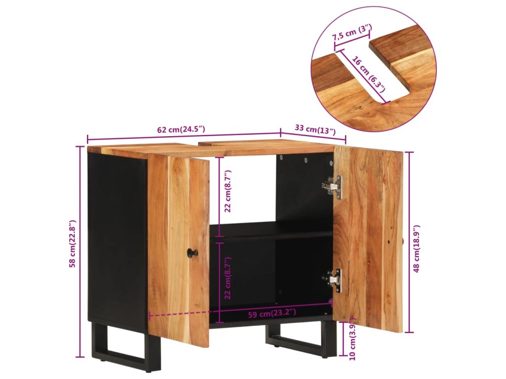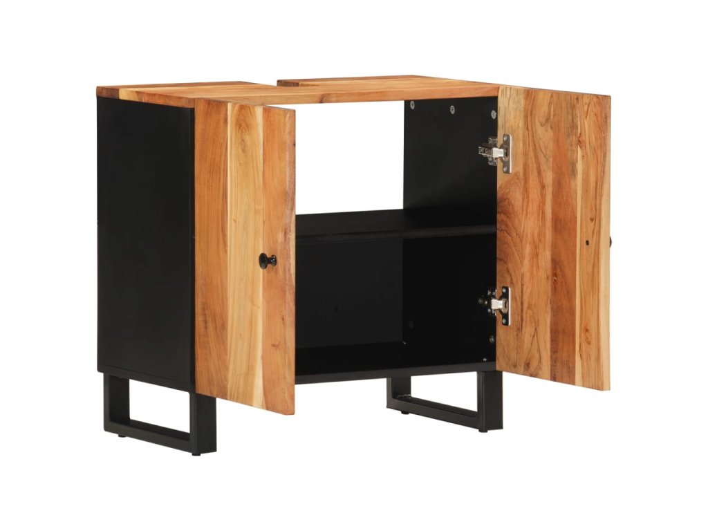 - Masivní akáciové dřevo: Tato skříňka pod umyvadlo je vyrobena z masivního akáciového dřeva v kombinaci s kompozitním dřevem. Masivní akáciové dřevo je nádherný přírodní materiál. Akáciové dřevo je tropické tvrdé dřevo, které má hustou strukturu a je pevné a odolné.