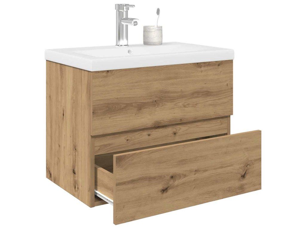 - Pevný materiál: Skříňka pod umyvadlo je vyrobena z kompozitního dřeva, které je mimořádně kvalitní s hladkým povrchem a zároveň se vyznačuje pevností, stabilitou a odolností proti vlhkosti.