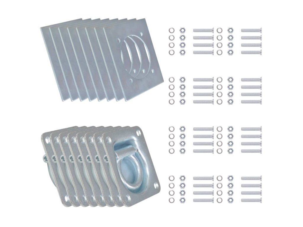 Tato vysoce odolná upínací oka využijete v případě, že na svůj přívěs nebo na zadní korbu pick-upu potřebujete připevnit těžký náklad. Upínací oka jsou pevná a díky pozinkování odolávají rzi a povětrnostním vlivům, takže se hodí na dlouhodobé venkovní použití. Součástí balení jsou také destičky, podložky a šrouby, tedy vše, co k připevnění ok na svůj přívěs potřebujete.