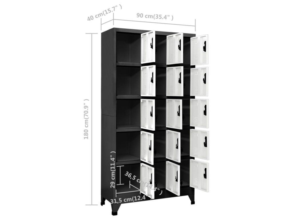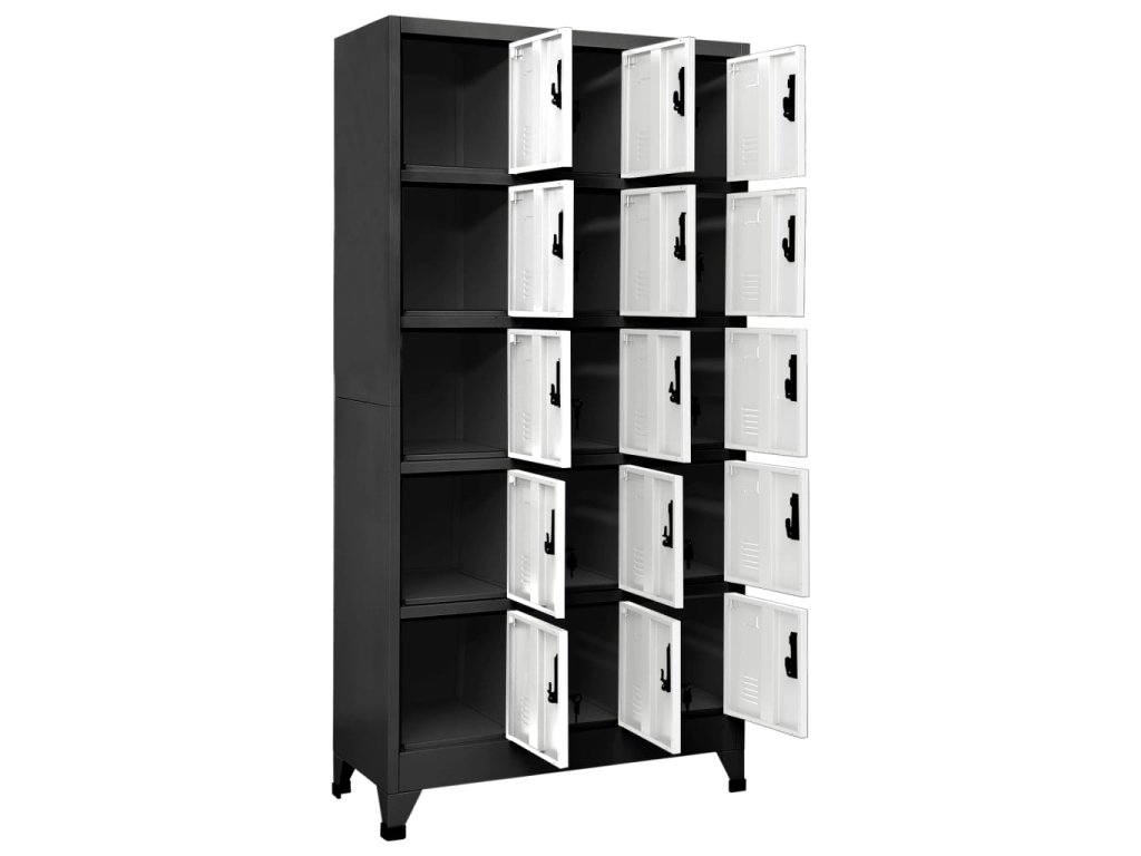 Úložná skříňka je vyrobena z oceli, proto má dlouhou životnost a snadno se čistí. Každá přihrádka je vybavena uzamykatelnými dvířky s větracími otvory. Skříň má dostatek úložného prostoru pro bezpečné uložení oblečení a dalších osobních věcí. Držáky na štítky umožňují přehledně třídit vaše položky. Tato skříň je vhodná do škol a kanceláří k uložení nejrůznějších věcí.