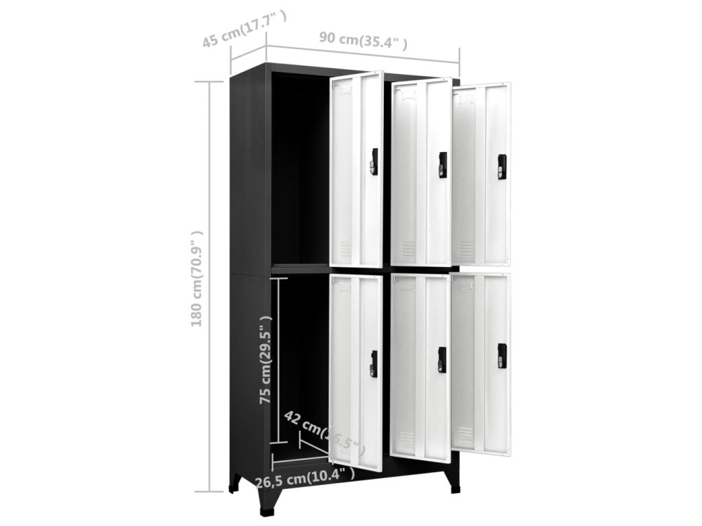 Úložná skříňka je vyrobena z oceli, proto má dlouhou životnost a snadno se čistí. Každá přihrádka je vybavena věšákem a uzamykatelnými dvířky s větracími otvory. Skříň má dostatek úložného prostoru pro bezpečné uložení oblečení a dalších osobních věcí. Držáky na štítky a větrací otvory umožňují přehledně třídit vaše položky. Tato skříň je vhodná do škol a kanceláří k uložení různých věcí.