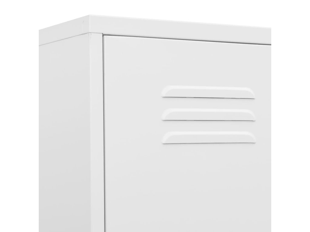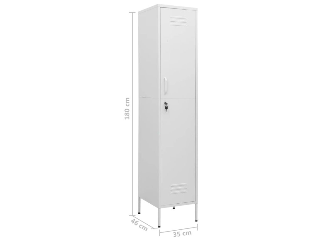Úložná skříň je vyrobena z oceli, je tedy odolná a snadno se čistí. Na spodní straně má nivelizační nožičky, které vám umožní nastavit výšku podle vašich potřeb. Ocelová skříň je vybavena 4 nastavitelnými policemi a zámky, takže nabízí dostatek úložného prostoru pro vaše věci, jako například oblečení, boty, kabelky, knihy, složky atd.