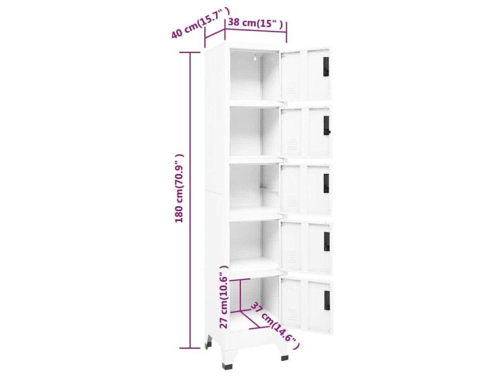 Úložná skříňka je vyrobena z oceli, proto má dlouhou životnost a snadno se čistí. Každá přihrádka je vybavena uzamykatelnými dvířky s větracími otvory. Skříň má dostatek úložného prostoru pro bezpečné uložení oblečení a dalších osobních věcí. Držáky na štítky umožňují přehledně třídit vaše položky. Tato skříň je vhodná do škol a kanceláří k uložení nejrůznějších věcí.