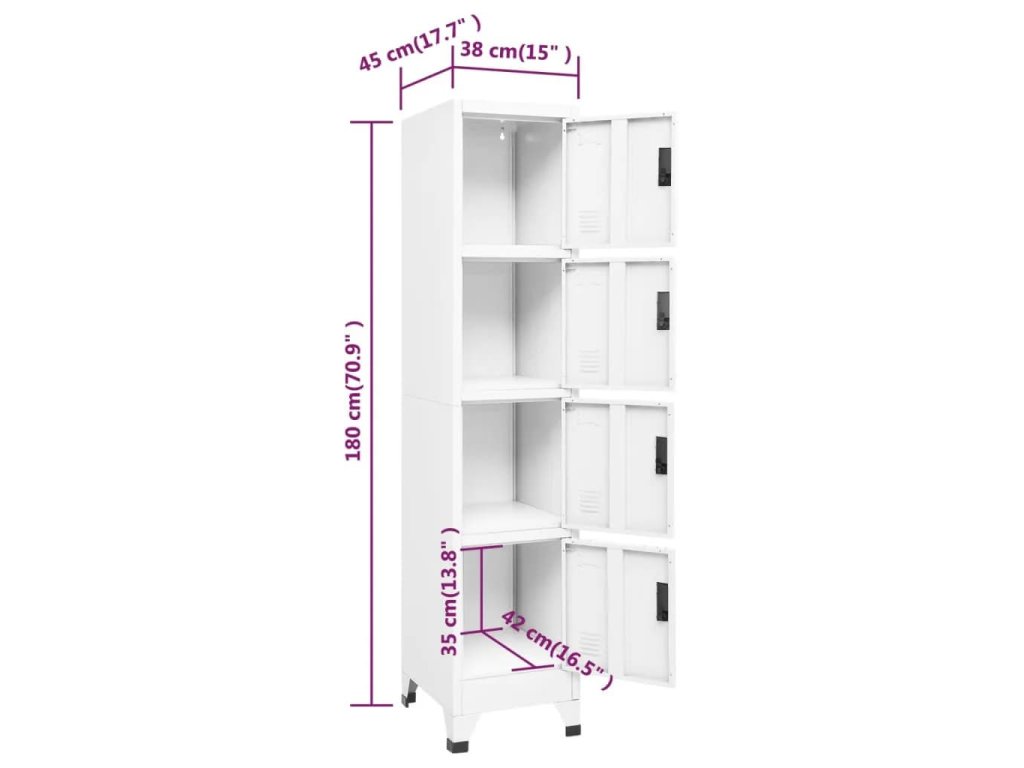 Úložná skříňka je vyrobena z oceli, proto má dlouhou životnost a snadno se čistí. Každá přihrádka je vybavena uzamykatelnými dvířky s větracími otvory. Skříň má dostatek úložného prostoru pro bezpečné uložení oblečení a dalších osobních věcí. Držáky na štítky umožňují přehledně třídit vaše položky. Tato skříň je vhodná do škol a kanceláří k uložení nejrůznějších věcí.