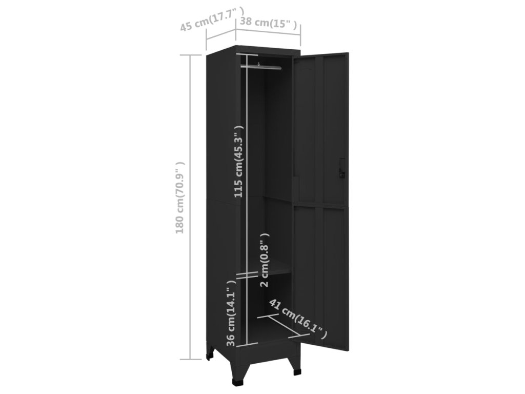 Úložná skříňka je vyrobena z oceli, proto má dlouhou životnost a snadno se čistí. Skříňka je vybavená věšákem, policí a uzamykatelnými dvířky s větracími otvory. Skříň má dostatek úložného prostoru pro bezpečné uložení oblečení a dalších osobních věcí. Držáky na štítky a větrací otvory umožňují přehledně třídit vaše položky. Tato skříň je vhodná do škol a kanceláří k uložení různých věcí.