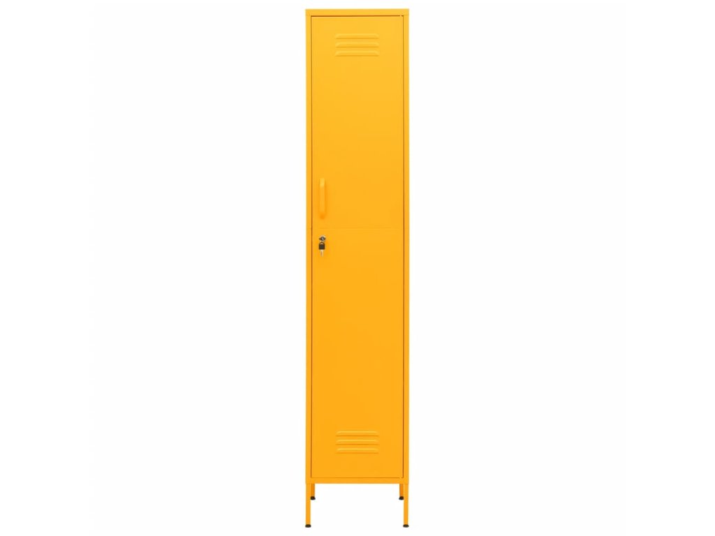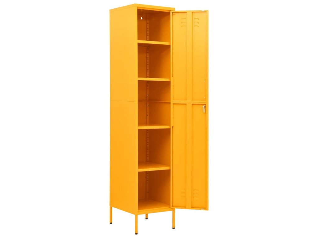 Úložná skříň je vyrobena z oceli, je tedy odolná a snadno se čistí. Na spodní straně má nivelizační nožičky, které vám umožní nastavit výšku podle vašich potřeb. Ocelová skříň je vybavena 4 nastavitelnými policemi a zámky, takže nabízí dostatek úložného prostoru pro vaše věci, jako například oblečení, boty, kabelky, knihy, složky atd.