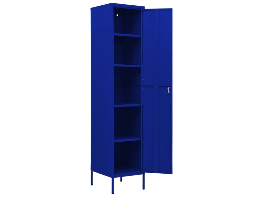 Úložná skříň je vyrobena z oceli, je tedy odolná a snadno se čistí. Na spodní straně má nivelizační nožičky, které vám umožní nastavit výšku podle vašich potřeb. Ocelová skříň je vybavena 4 nastavitelnými policemi a zámky, takže nabízí dostatek úložného prostoru pro vaše věci, jako například oblečení, boty, kabelky, knihy, složky atd.