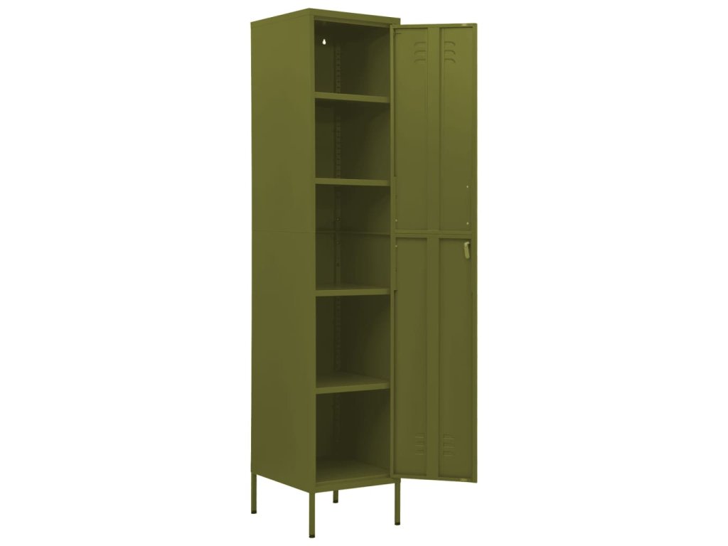 Úložná skříň je vyrobena z oceli, je tedy odolná a snadno se čistí. Na spodní straně má nivelizační nožičky, které vám umožní nastavit výšku podle vašich potřeb. Ocelová skříň je vybavena 4 nastavitelnými policemi a zámky, takže nabízí dostatek úložného prostoru pro vaše věci, jako například oblečení, boty, kabelky, knihy, složky atd.