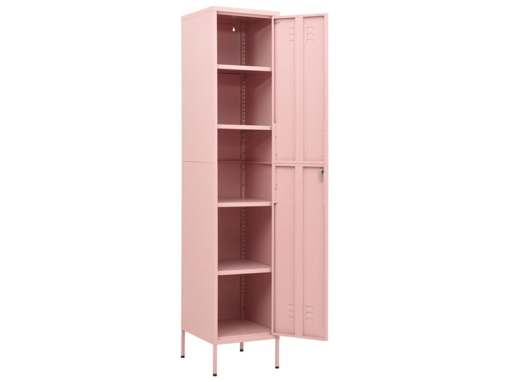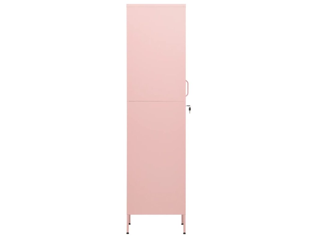 Úložná skříň je vyrobena z oceli, je tedy odolná a snadno se čistí. Na spodní straně má nivelizační nožičky, které vám umožní nastavit výšku podle vašich potřeb. Ocelová skříň je vybavena 4 nastavitelnými policemi a zámky, takže nabízí dostatek úložného prostoru pro vaše věci, jako například oblečení, boty, kabelky, knihy, složky atd.