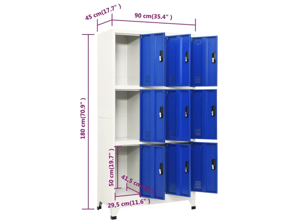 Úložná skříňka je vyrobena z oceli, proto má dlouhou životnost a snadno se čistí. Každá přihrádka je vybavena uzamykatelnými dvířky s větracími otvory. Skříň má dostatek úložného prostoru pro bezpečné uložení oblečení a dalších osobních věcí. Držáky na štítky umožňují přehledně třídit vaše položky. Tato skříň je vhodná do škol a kanceláří k uložení nejrůznějších věcí.