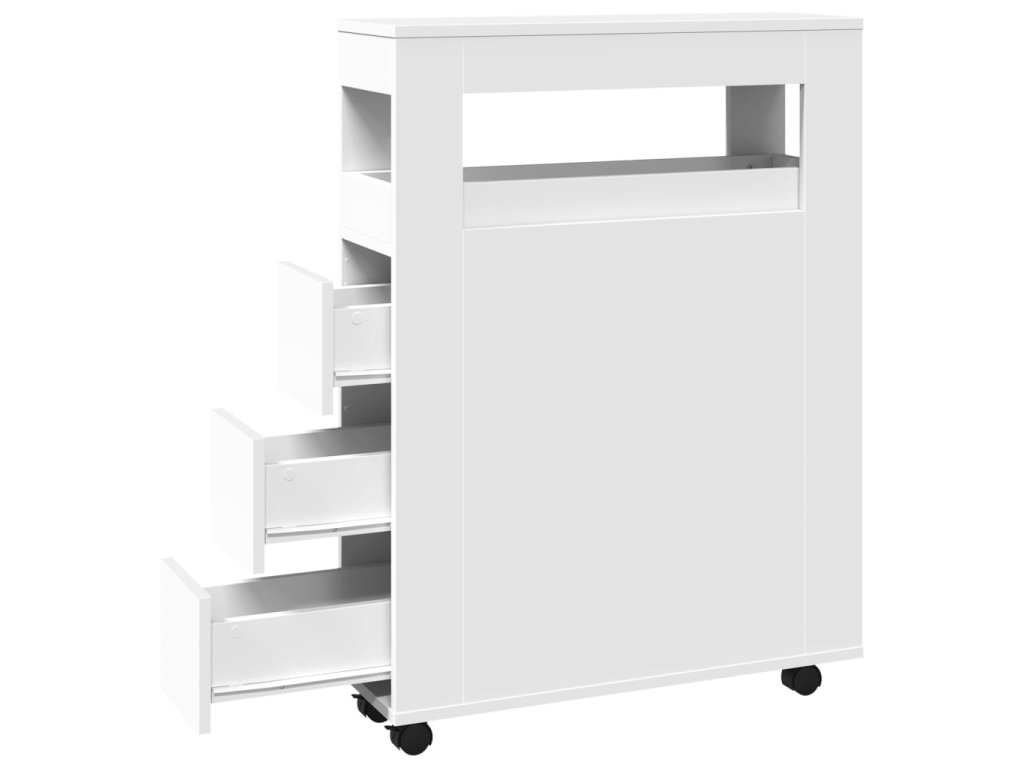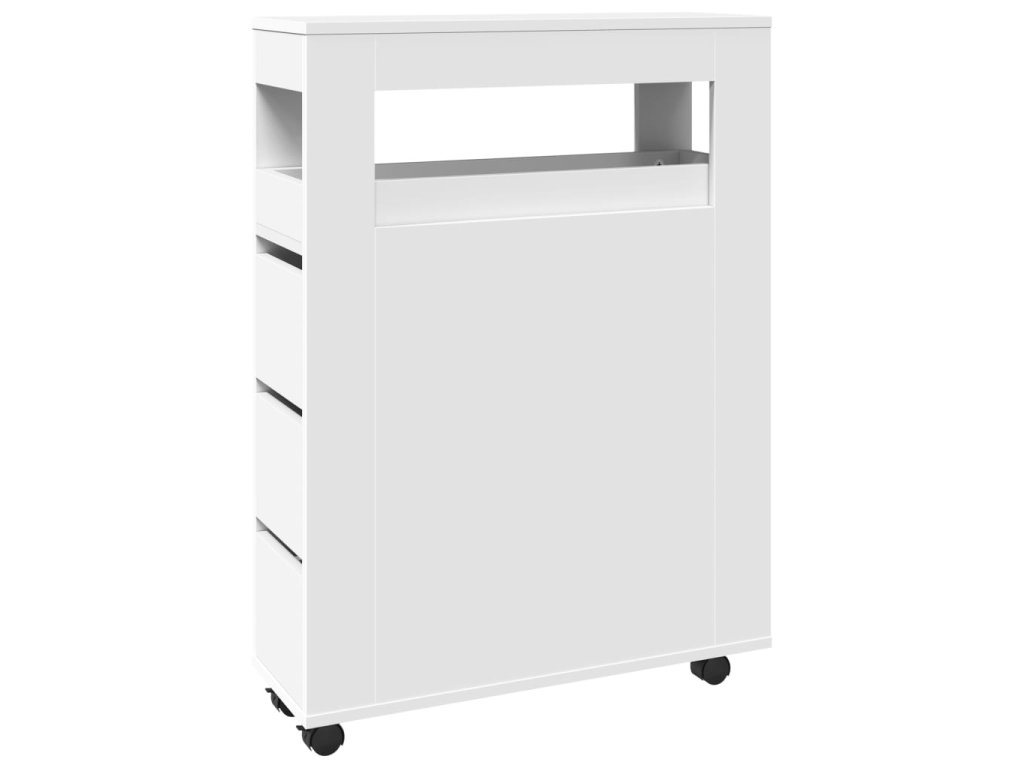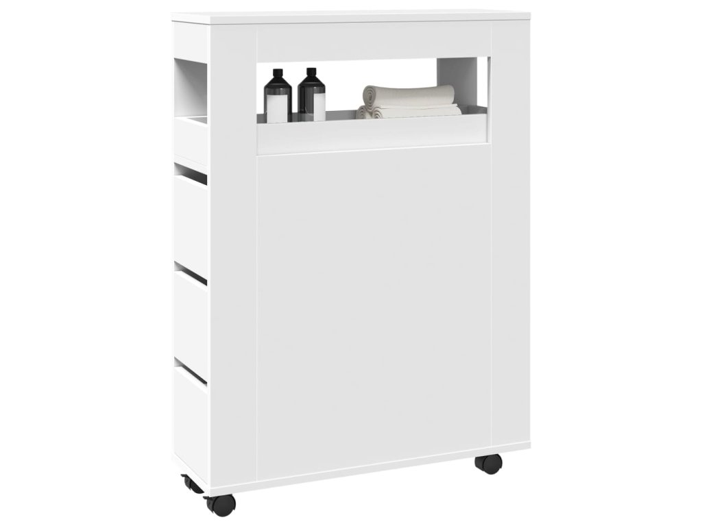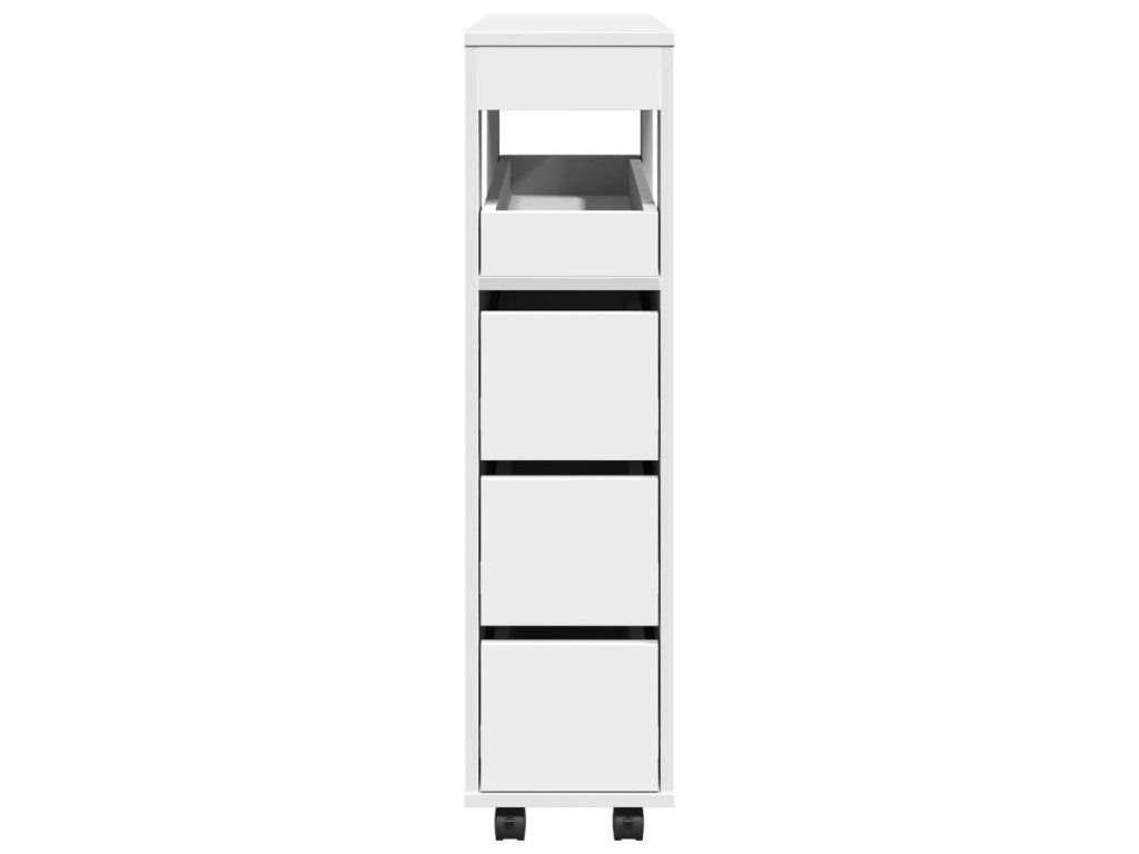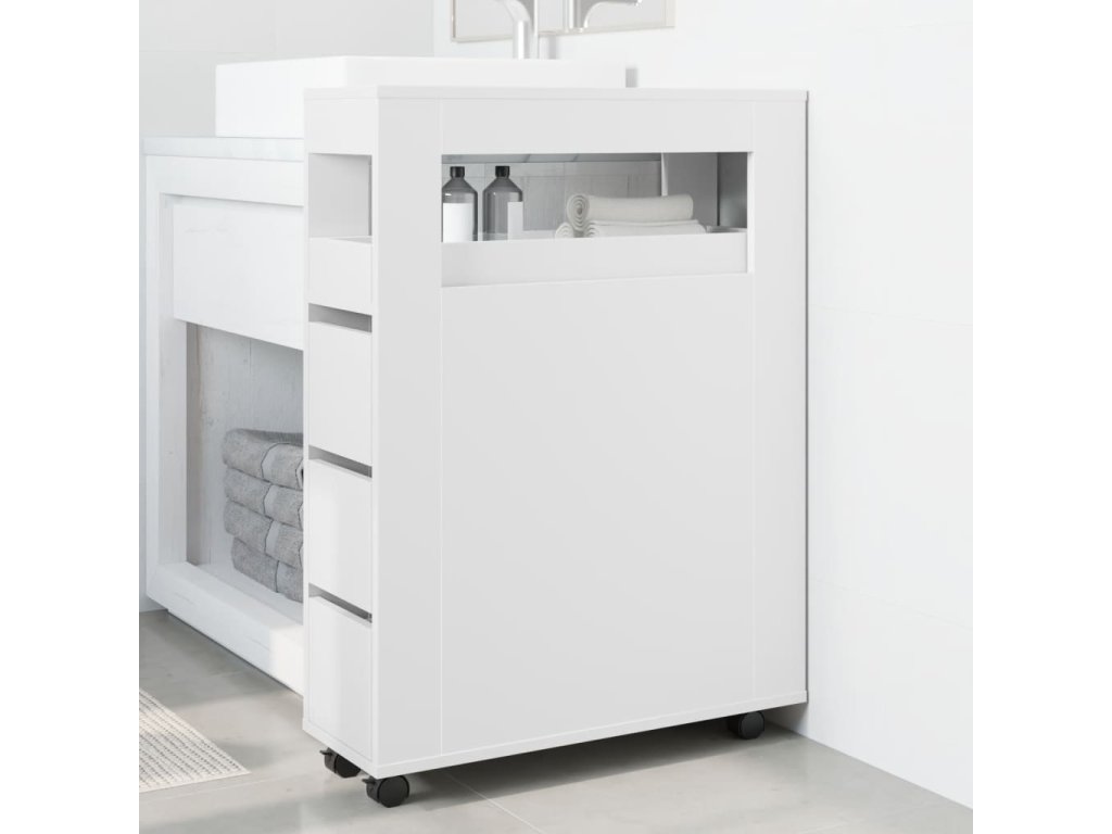 - Snadné použití: Díky kvalitním kovovým pojezdům lze s úzkou úložnou skříňkou do koupelny hladce manipulovat a získat tak snadný přístup k uloženým věcem.