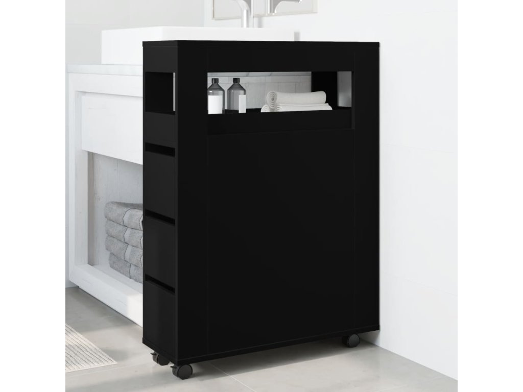 - Snadné použití: Díky kvalitním kovovým pojezdům lze s úzkou úložnou skříňkou do koupelny hladce manipulovat a získat tak snadný přístup k uloženým věcem.