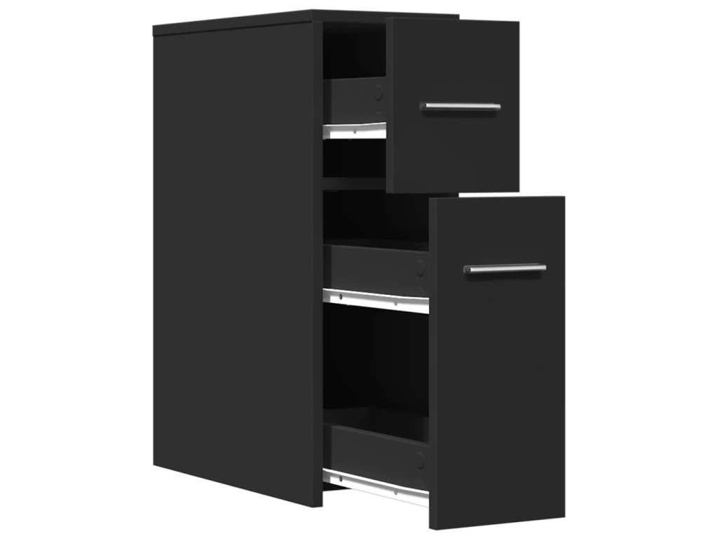 - Snadné použití: Díky kvalitním kovovým pojezdům a elegantním úchytům lze s úzkou skříňkou hladce manipulovat a získat tak snadný přístup k uloženým věcem.