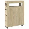 - Snadný pohyb: Tuto úzkou koupelnovou skříňku lze díky čtyřem otočným kolečkům, která jsou součástí dodávky, snadno přemístit na požadované místo. Dvě kolečka jsou uzamykatelná, což udržuje skříňku na místě a zvyšuje stabilitu.