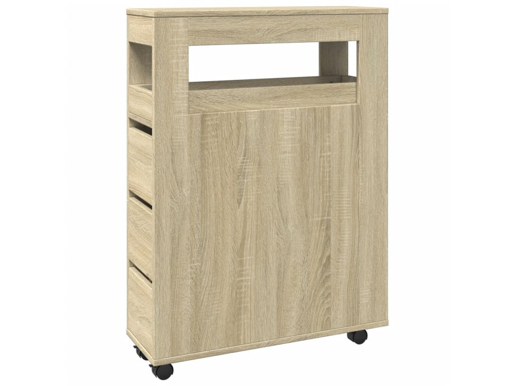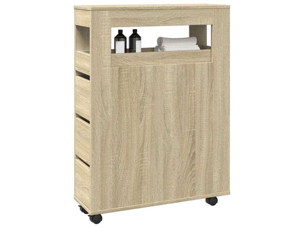 - Snadný pohyb: Tuto úzkou koupelnovou skříňku lze díky čtyřem otočným kolečkům, která jsou součástí dodávky, snadno přemístit na požadované místo. Dvě kolečka jsou uzamykatelná, což udržuje skříňku na místě a zvyšuje stabilitu.