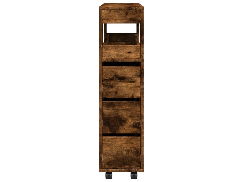 - Snadné použití: Díky kvalitním kovovým pojezdům lze s úzkou úložnou skříňkou do koupelny hladce manipulovat a získat tak snadný přístup k uloženým věcem.
