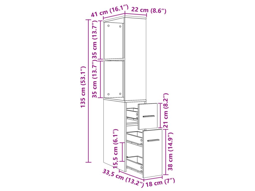 - Celkové rozměry: 22 x 41 x 135 cm (Š x H x V)