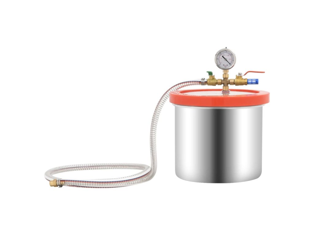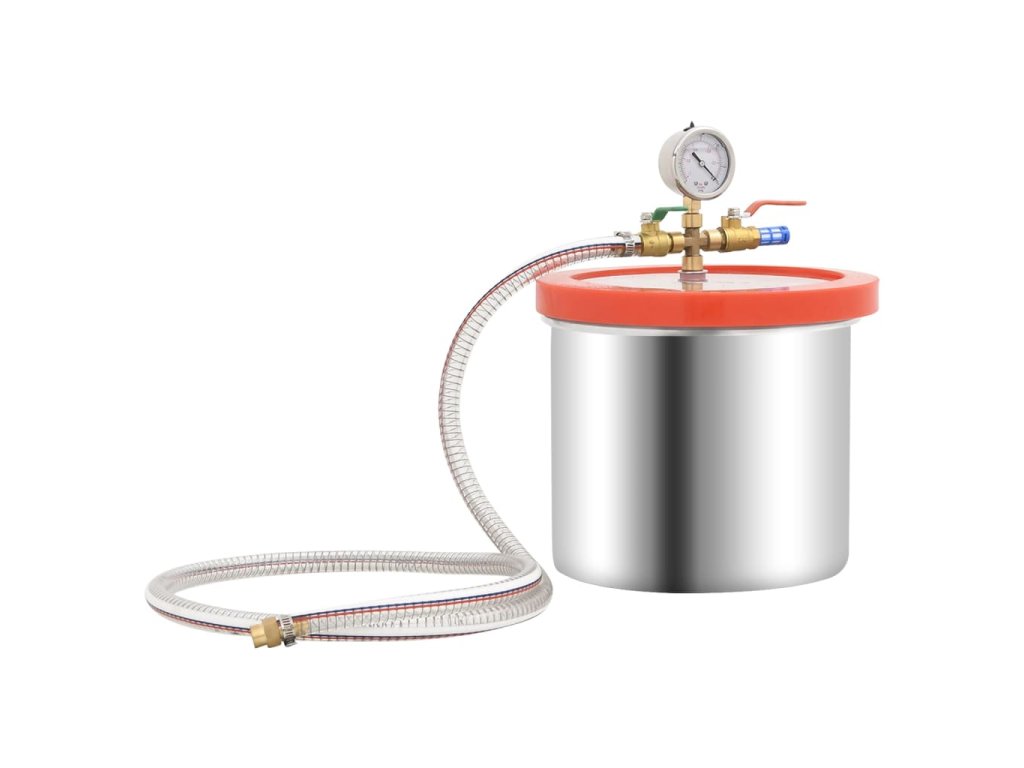 - Lepší přehled: Průhledné akrylové víko se při vakuových operacích neohýbá, což umožňuje lepší přehled o celém procesu odplyňování. Pro lepší kontrolu je vybavena i olejovým vakuoměrem a nárazuvzdorným vakuoměrem.