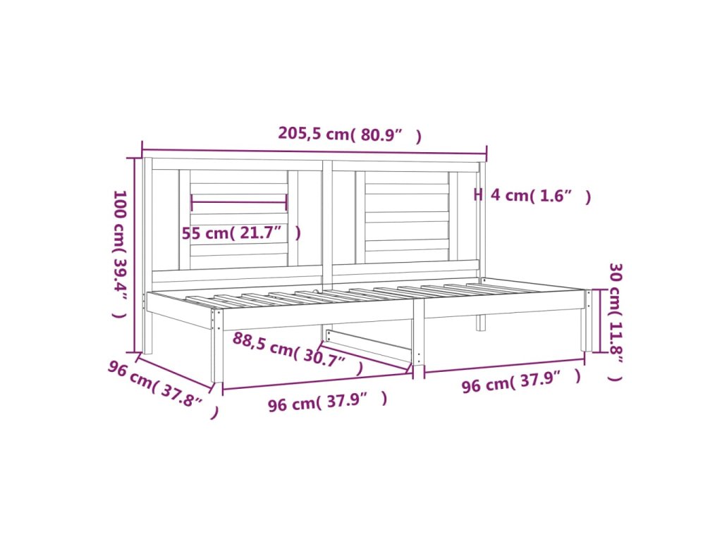 - Rozměry pohovky: 205,5 x 96 x 100 cm (D x Š x V)