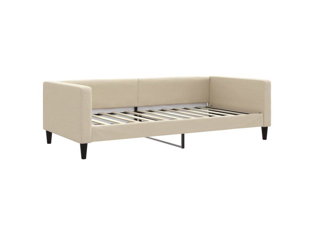 - Odolná tkanina a pevná konstrukce: Tato válenda má robustní rám ze dřeva a kovu a je čalouněná odolnou a pohodlnou látkou.