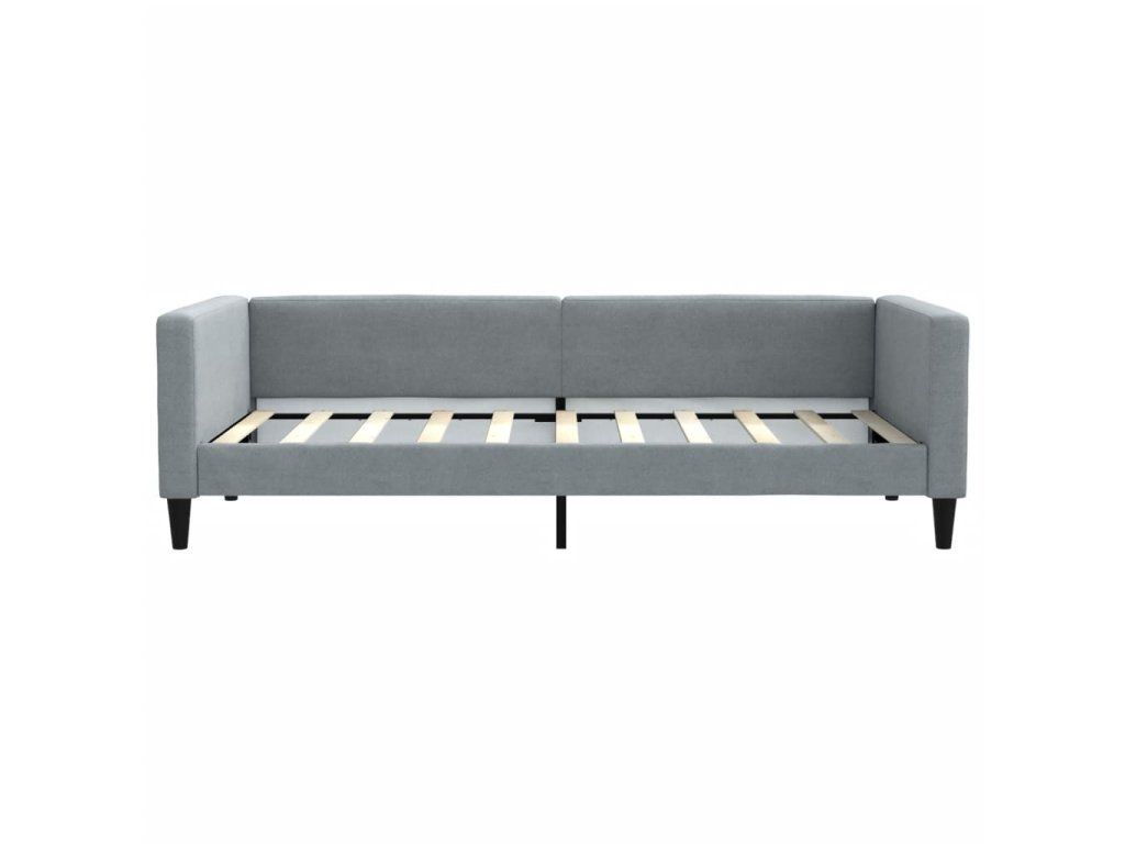 - Odolná tkanina a pevná konstrukce: Tato válenda má robustní rám ze dřeva a kovu a je čalouněná odolnou a pohodlnou látkou.