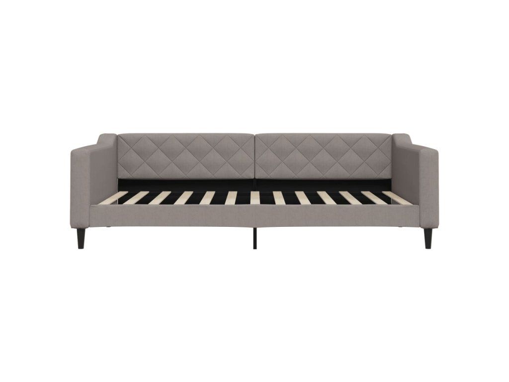 - Odolná tkanina a pevná konstrukce: Tato válenda má robustní rám ze dřeva a kovu a je čalouněná odolnou a pohodlnou látkou.