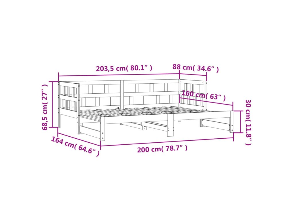 - Rozměry (nevysunuté): 203,5 x 86 x 68,5 cm (D x Š x V)