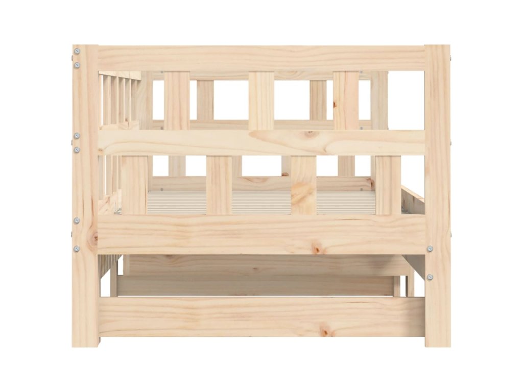 - Masivní borové dřevo: Masivní borové dřevo je krásný přírodní materiál. Borové dřevo má rovnou kresbu a obsahuje suky, které materiálu dodávají jeho charakteristický, rustikální vzhled. Postel pro hosty je vyrobená z masivního borového dřeva, což jí zajišťuje lepší stabilitu a odolnost.