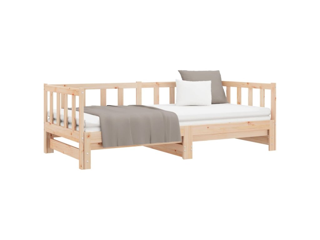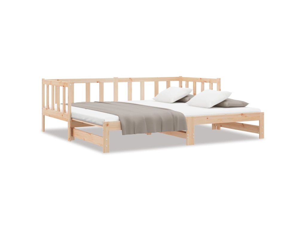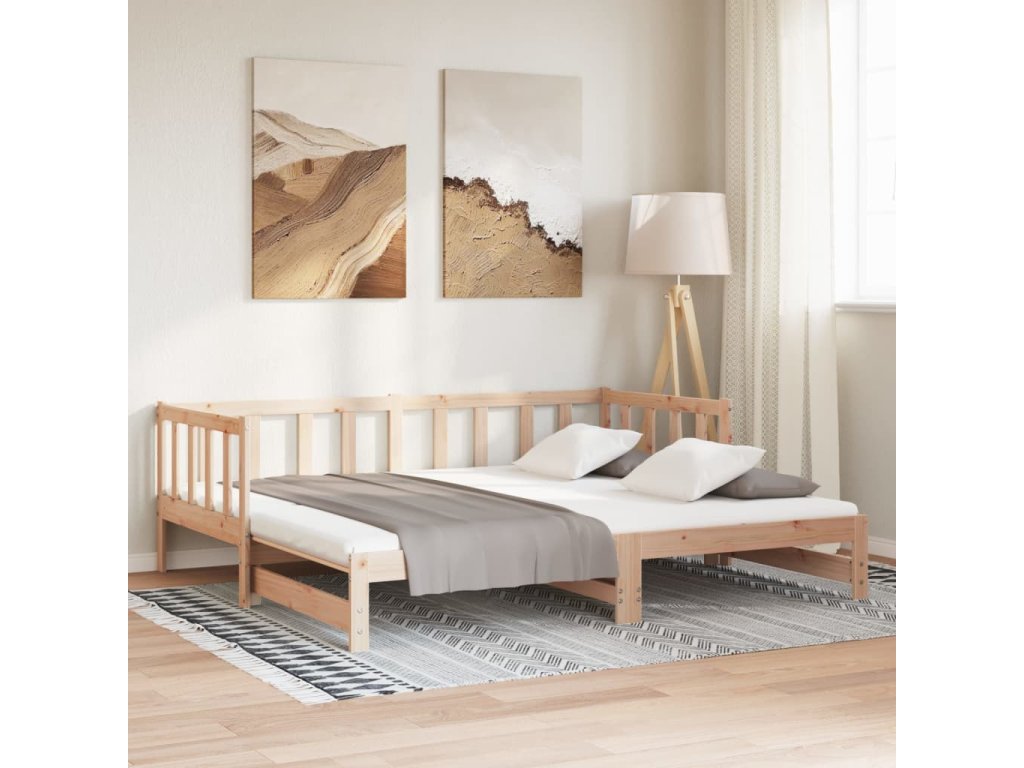 - Výsuvná rozkládací pohovka: Dřevěnou válendu lze během dne používat jako pohovku a přes noc jako postel, která vám nabídne rychle řešení k uložení vašich hostů a zároveň vám ušetří místo.