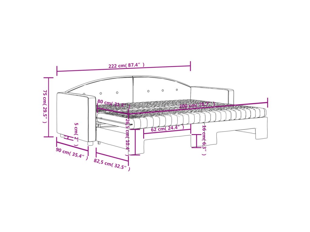 - Rozměry (nevysunuté): 222 x 90 x 75 cm (D x Š x V)