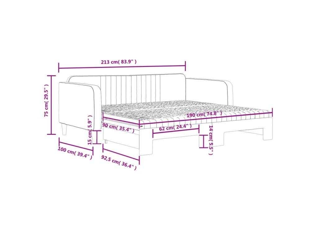 - Rozměry (nevysunuté): 213 x 100 x 75 cm (D x Š x V)