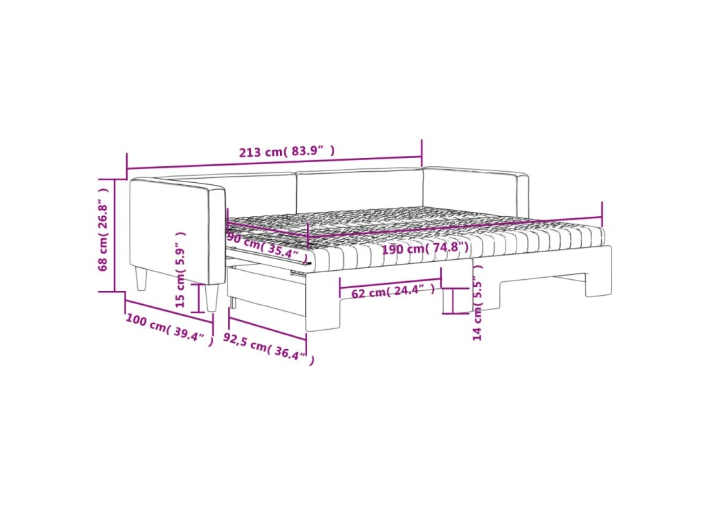 - Rozměry (nevysunuté): 213 x 100 x 68 cm (D x Š x V)