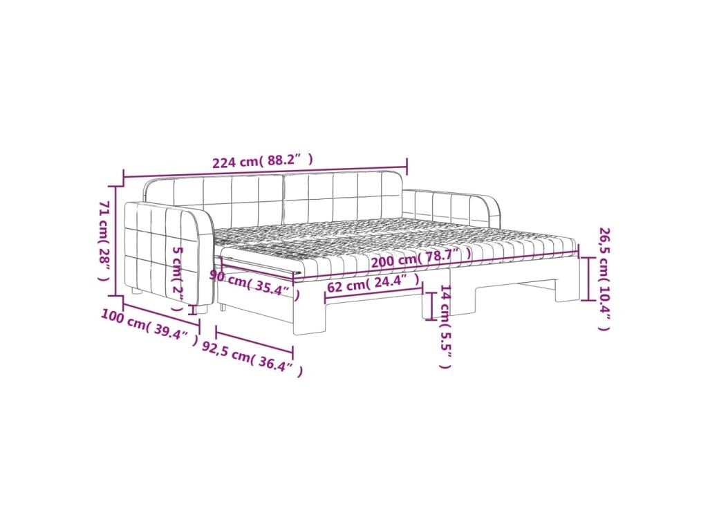 - Rozměry (nevysunuté): 224 x 100 x 71 cm (D x Š x V)
