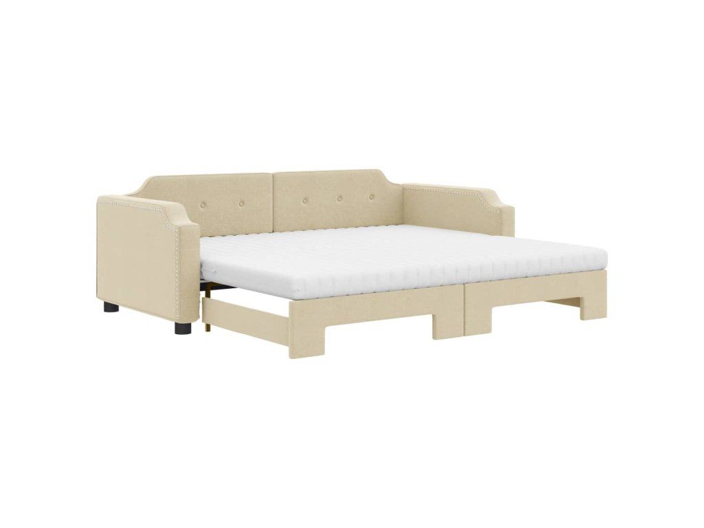- Odolná tkanina a pevná konstrukce: Tato válenda má robustní rám ze dřeva a kovu a je čalouněná odolnou a pohodlnou látkou.