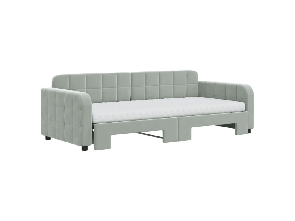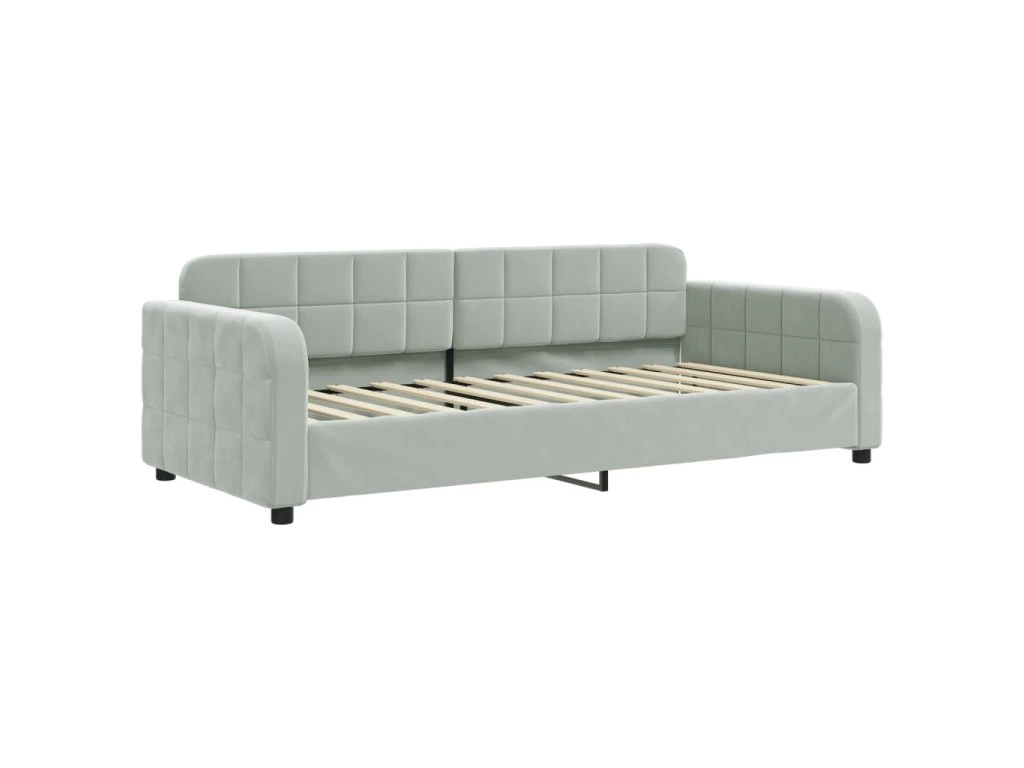 - Měkký samet a pevná konstrukce: Tato válenda má robustní rám zhotovený ze dřeva a kovu a je čalouněná měkkým a pohodlným sametem.